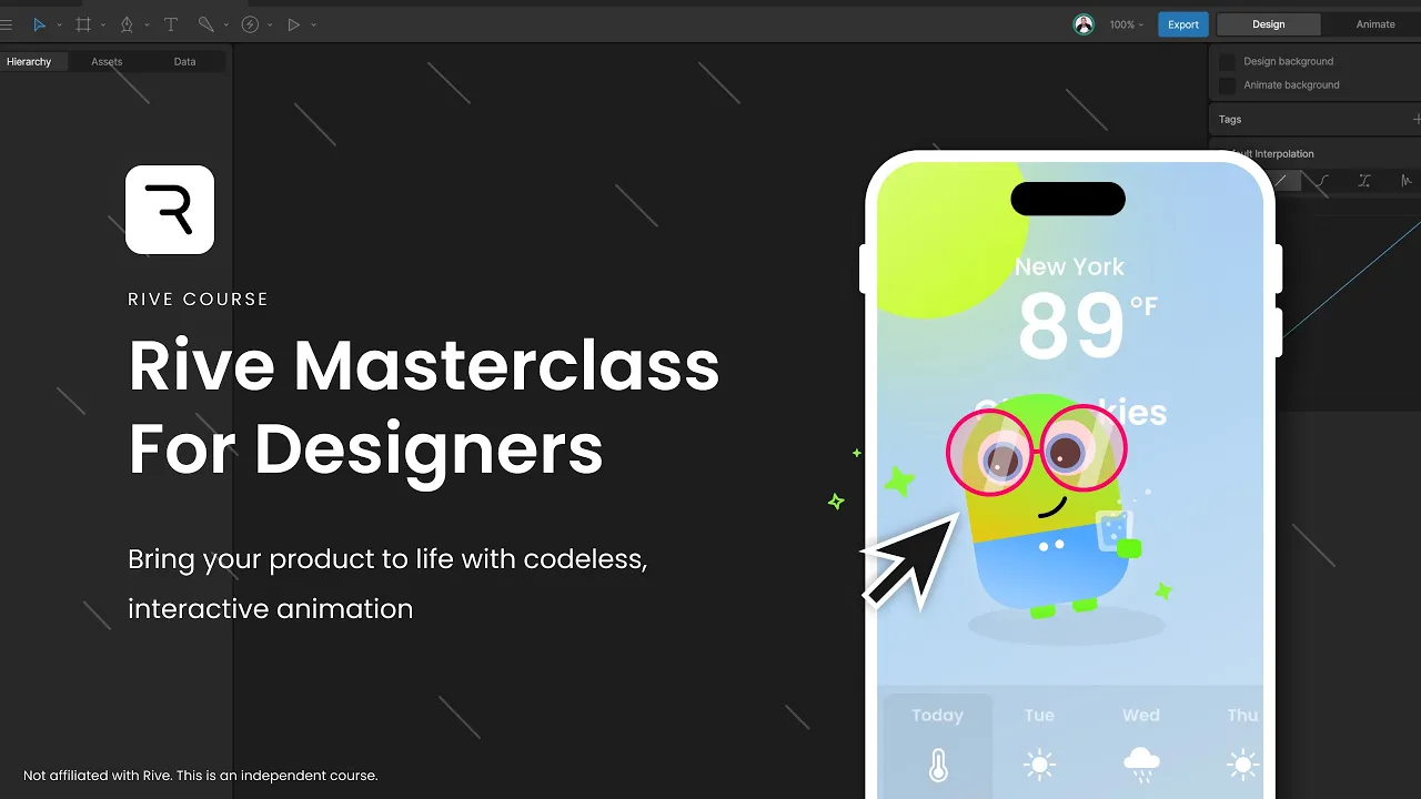 Dive into Rive State Machines — and make your animations respond to user actions and weather changes, from sunny to snowy.